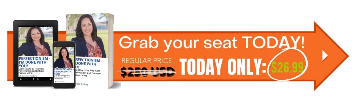 You have a choice to make: Do what you’ve been doing (or worse, do nothing at all). You know where that will lead. Is that really where you want to go? Or, get equipped and kick Per-fectionism to the curb! Learn how to be free from perfectionism and embrace fearless living!